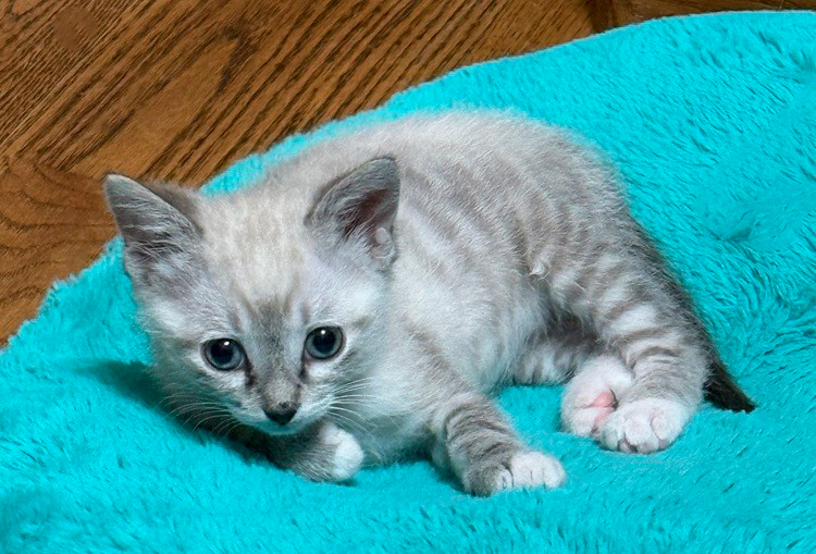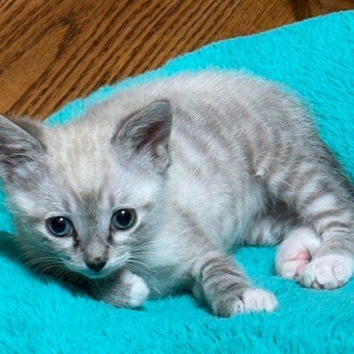 I am a handsome white, gray, blue and silver 10-week old baby boy. My sibling is Banks.