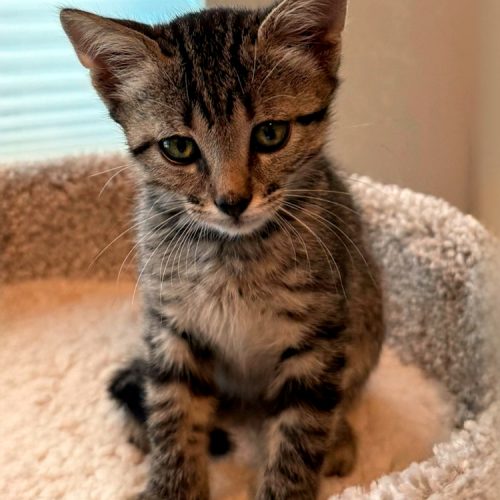 Darla is a sweet, energetic cat who wants to see what's going on with and around you and doesn't want to be left out of the games. When she's done exploring and playing, she will sit on your lap and purr to recharge. Darla was born on our ranch to a beautiful semi-feral cat. She was weaned from her mom at six weeks and is now thoroughly socialized to people. She is destined to be some caring person or family's lap kitty.