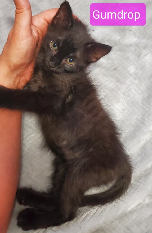 Gumdrop is a playful girl who will bring fun and energy to her new home. She gets along with people and other kitties. We have not tried her with dogs but with proper introduction, she should be just fine. Gumdrop has been spayed, vaccinated and microchipped. She is ready to go home this week!