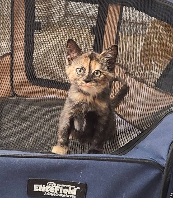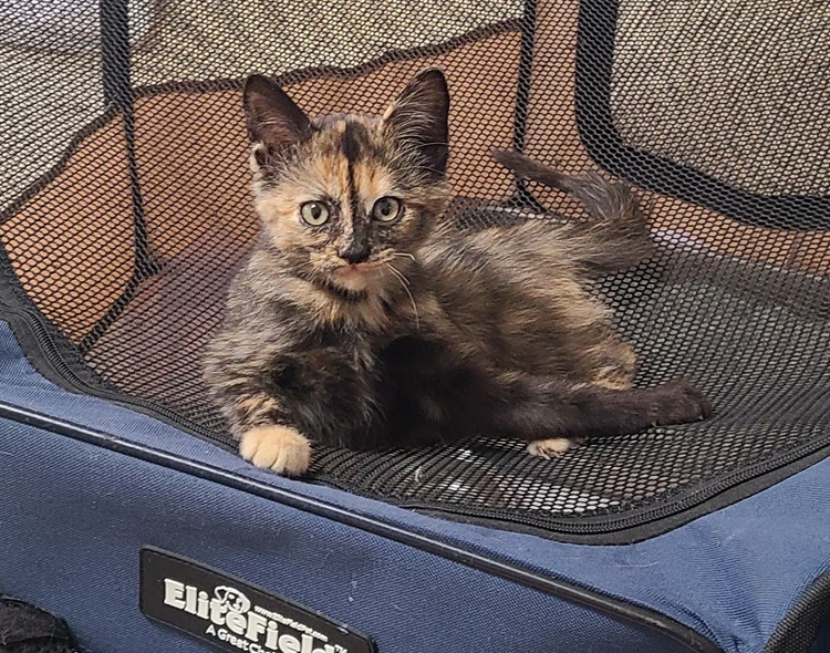 Libby was a tiny kitten when she was found by a concerned citizen in Dallas. In spite of her rough start, Libby is a healthy, energetic kitten who loves to play chase with her brother. Libby loves her toy mice and she will purr as soon as you pick her up! She has been spayed, vaccinated and microchipped.