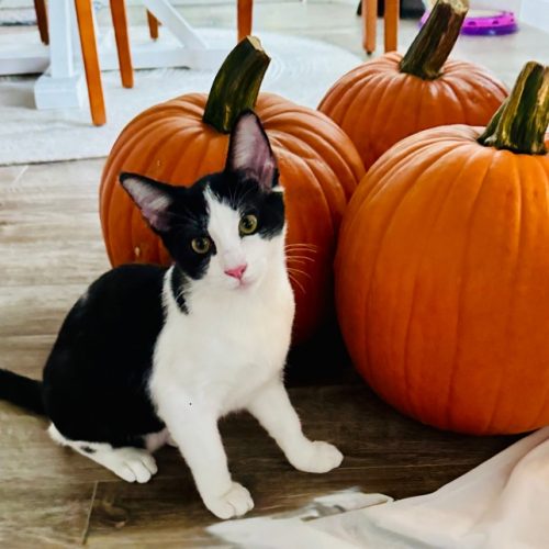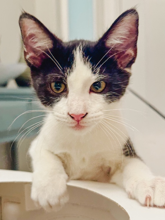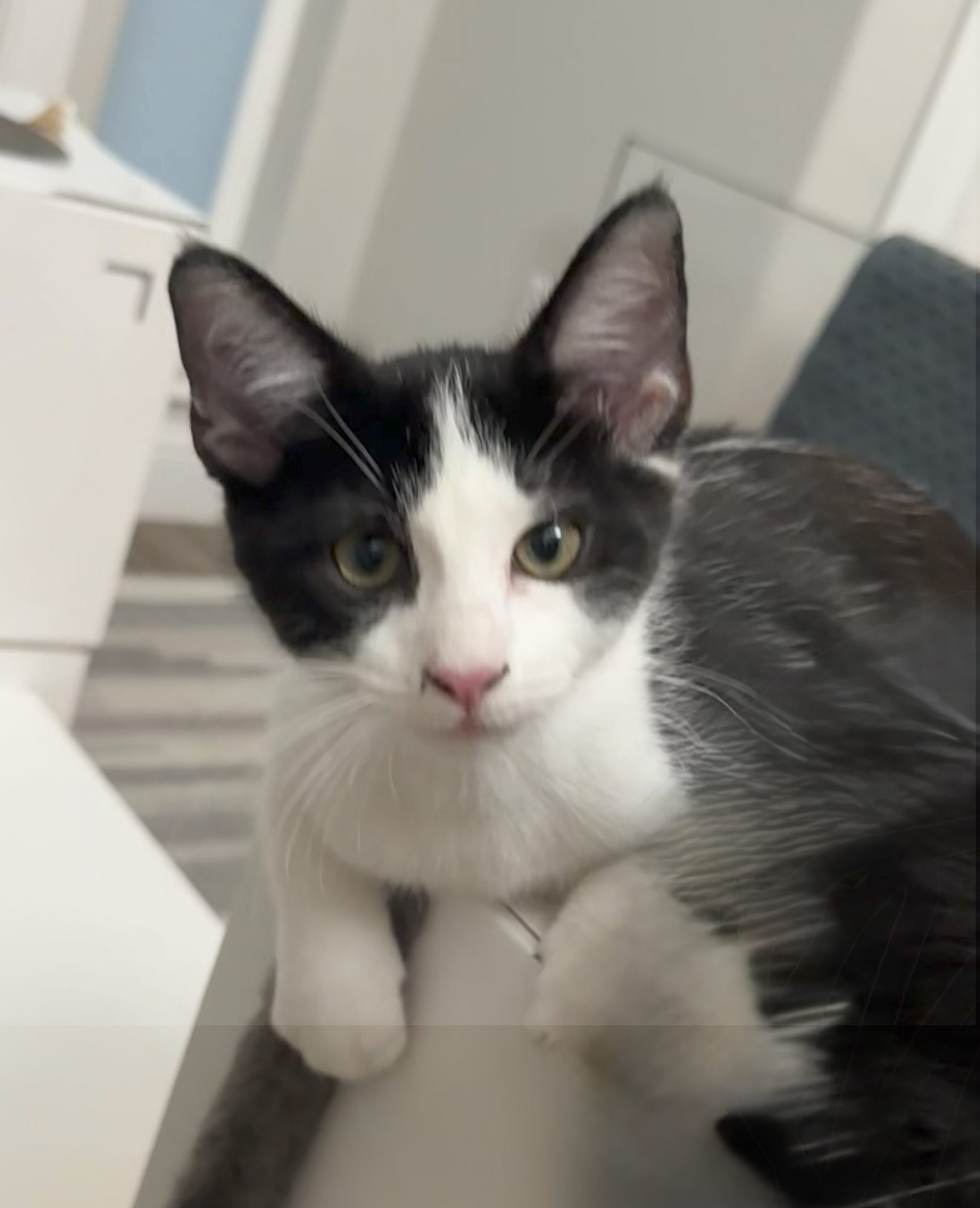 Mycroft is a black and white short-haired kitten whose superpower is simple but irresistible: one look into his eyes, and you’ll melt. This outgoing sweetheart is a true companion — affectionate, playful, and always ready to charm his way into your heart.