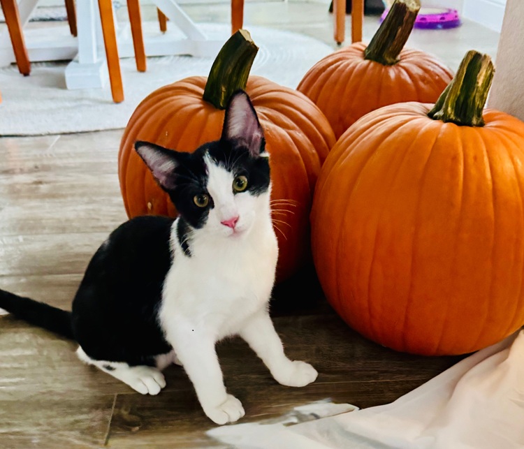 He’s a little Romeo with a big personality, known for his cuddles and his athletic flair. Mycroft plays fetch like a pro and has a budding career in kitten soccer — just ask his toy ball. Whether he’s chasing, snuggling, or simply gazing at you with adoration, he’s always bringing joy.