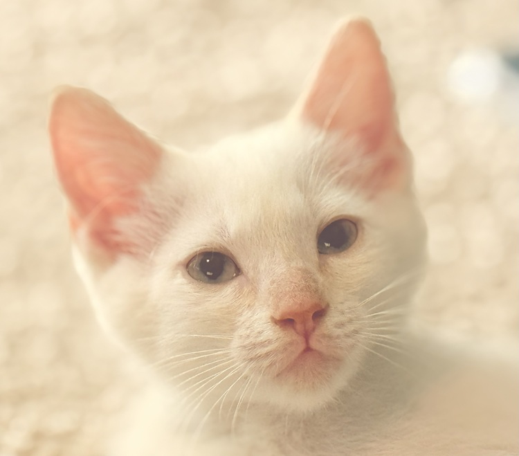 Taco is a beautiful Siamese mix with orange points on his face, ears and tail. He's got the traditional, blue eyes as well.