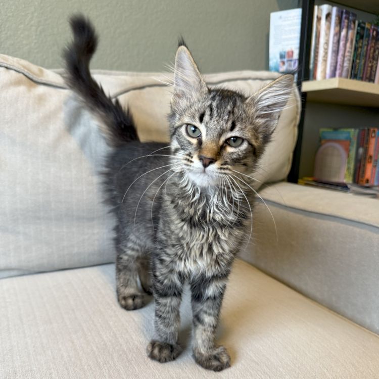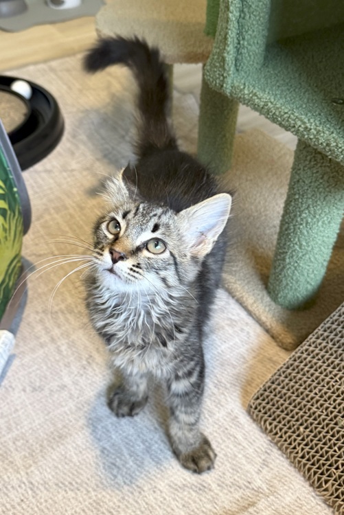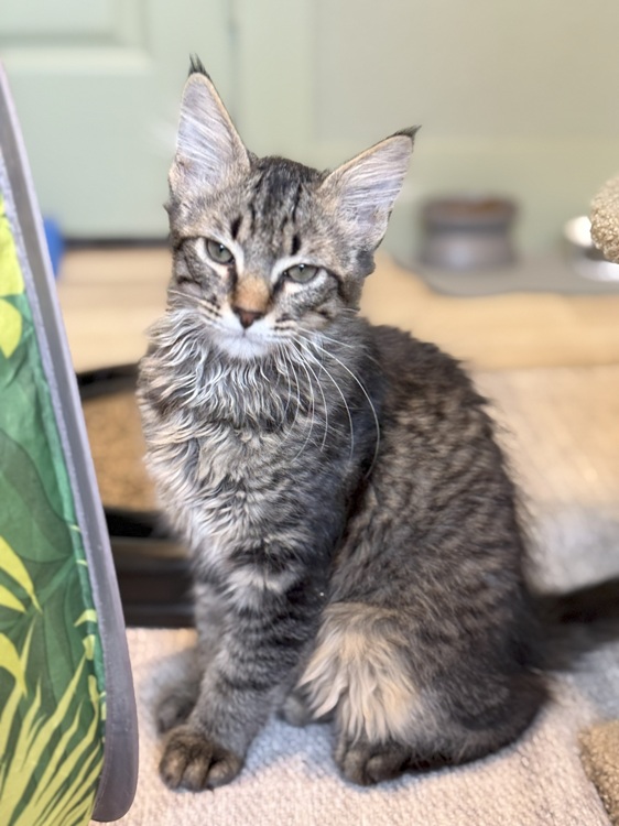 This debonair dude is Travis. He’s a Romeo in kitten cloth. He’s like the cool, hot guy in high school that all the girls crushed on. Loving snuggles and cuddles, his look of a little lion makes him irresistible. Foster mom thinks he’s got a bit of Maine Coon in him, but what does she know? Reach out to meet Travis!